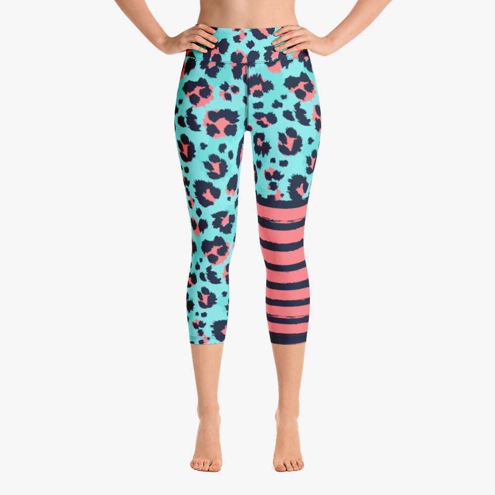 Match your Beepard Turquoise Pink crop top with these animal-printed capris for the ultimate workout outfit. The same playful bee and leopard print will keep you looking stylish and fierce, while the high waistband ensures a comfortable and flattering fit. You'll love the way these capris feel as you move, and you'll love the compliments you'll receive even more!