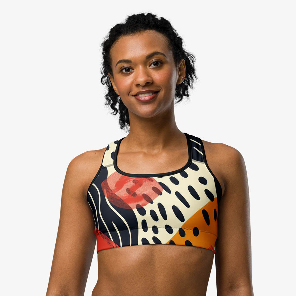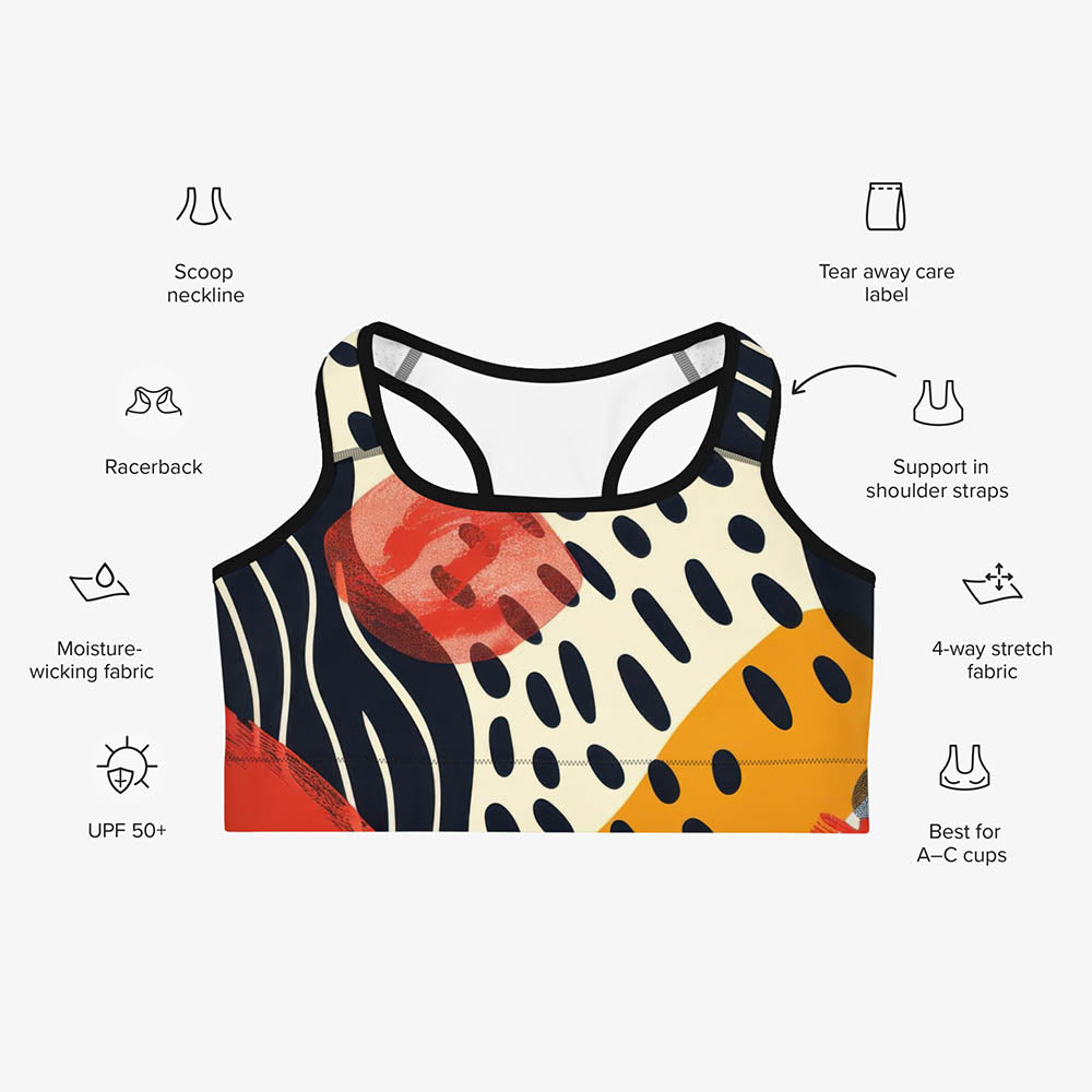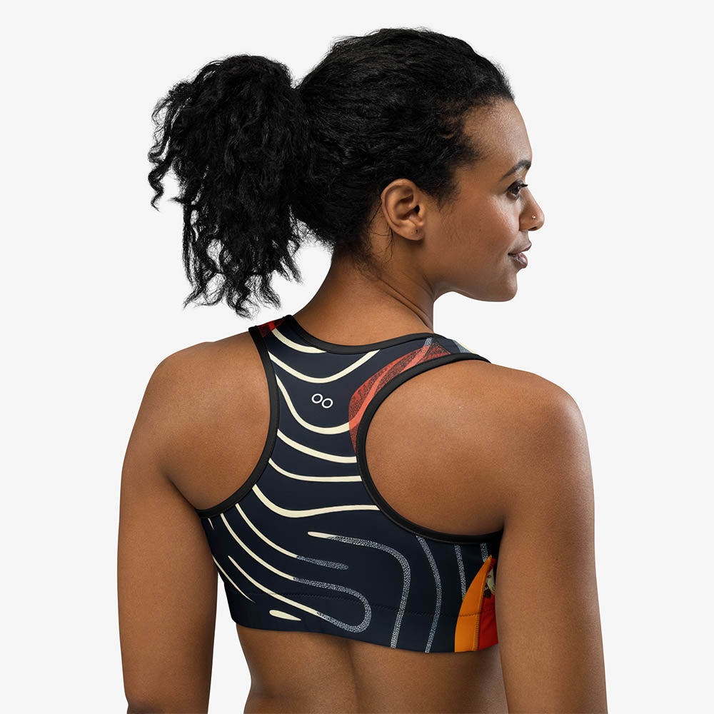 Printed Sports Bra "Dots & Waves" Midnight Blue/Mustard/Red