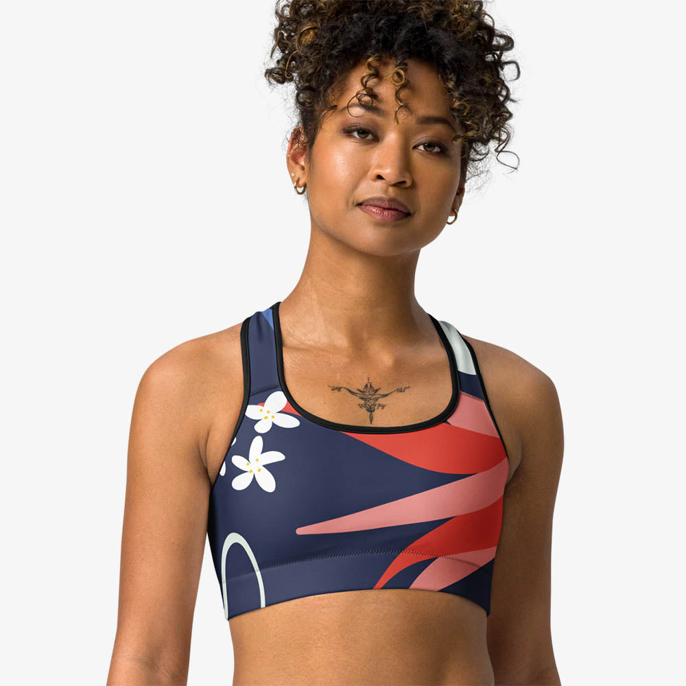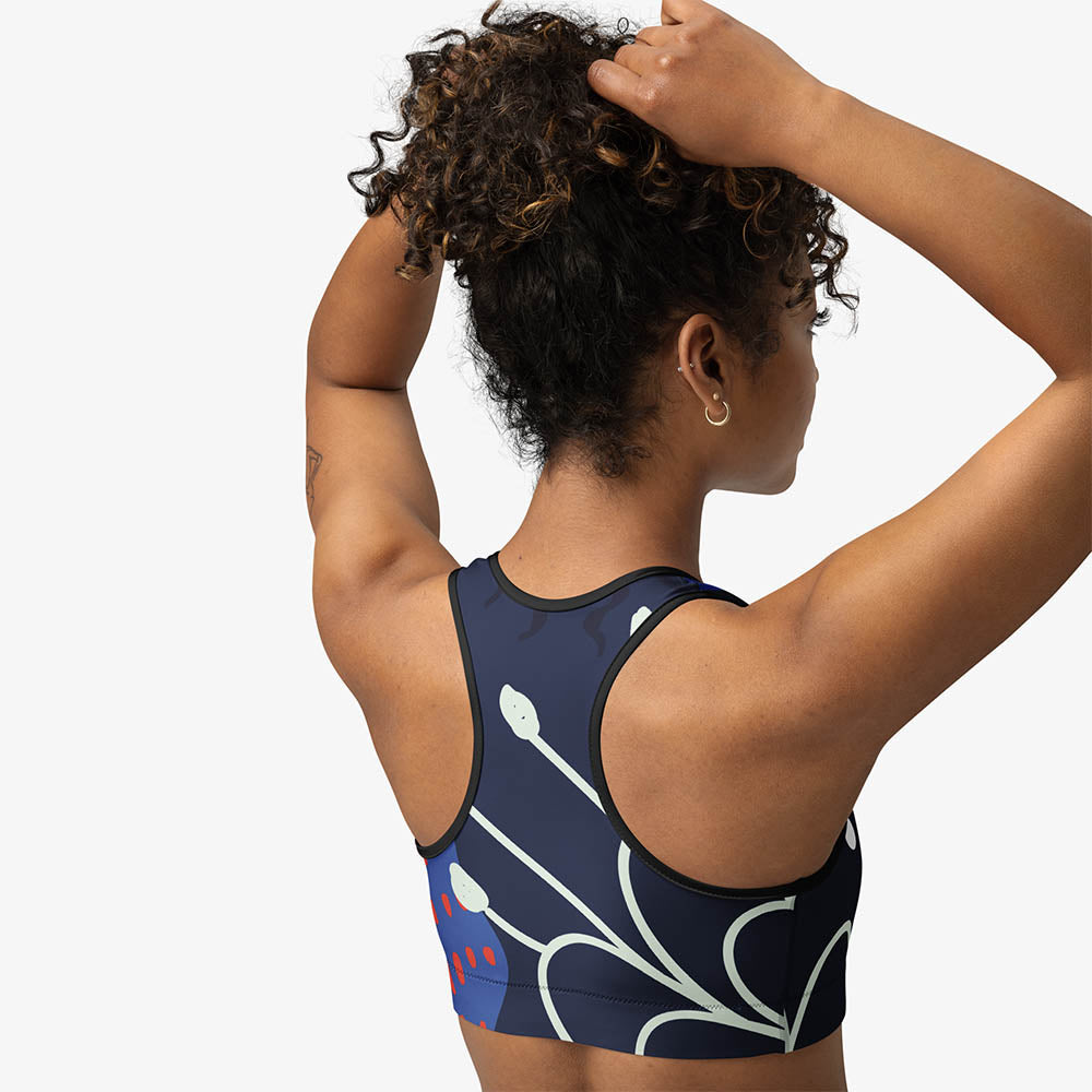 For our "Fluid Flower" leggings, this playful sports bra is the ultimate companion. Made with moisture-wicking fabric, it stays dry during even the sweatiest workouts. With support in the straps, a double layer front, and a wide elastic band, you'll feel fully supported at all times.