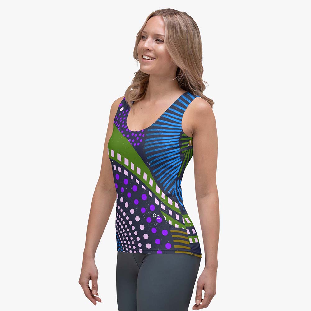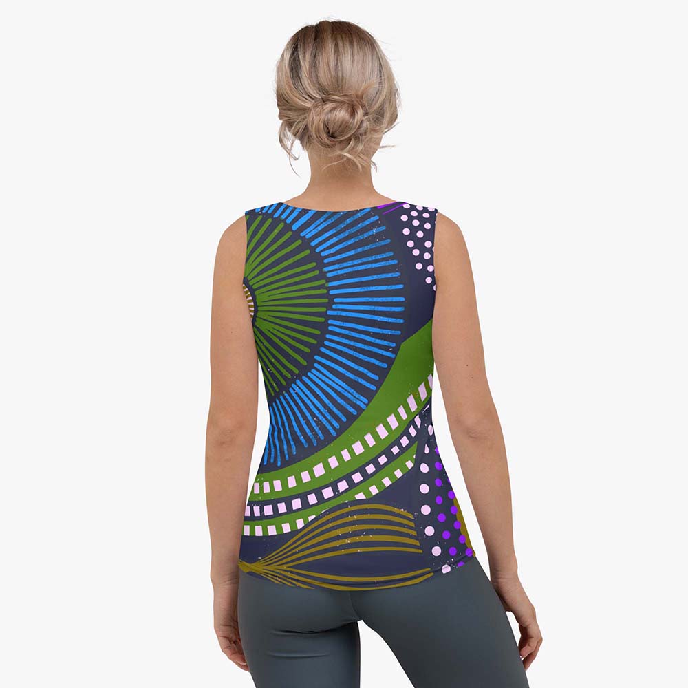 Pair your "Ethno Pop" leggings with this buttery soft and stretchy tank top. Made with a high-quality microfibre yarn, moisture wicking and super comfortable.