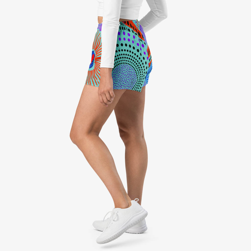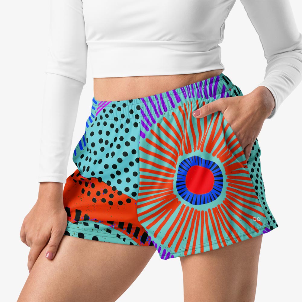 Recycled Breathy Shorts "Ethno Pop" Turquoise/Red