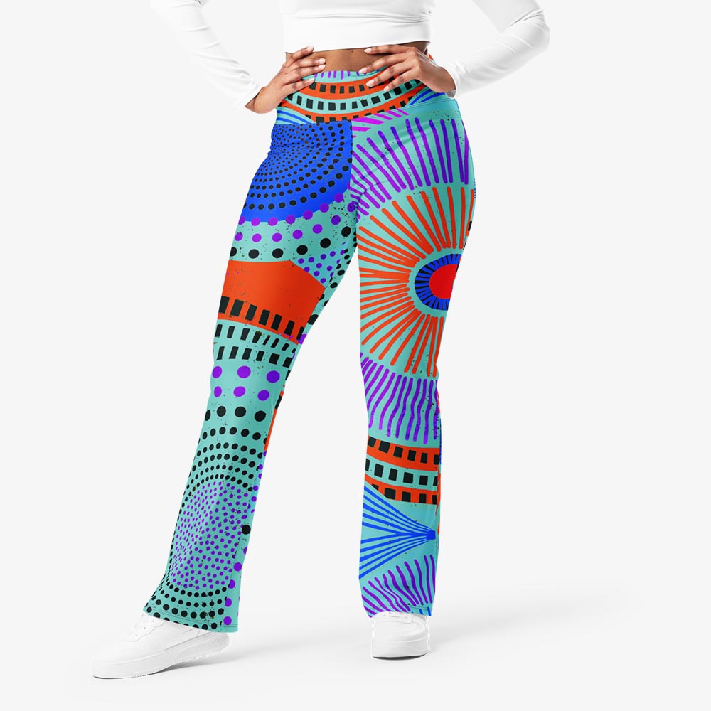 Recycled Flare leggings "EthnoPop" Turquoise/Red