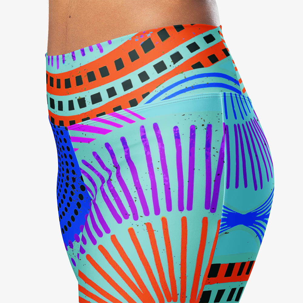 Zoom Recycled Flare leggings "EthnoPop" Turquoise/Red