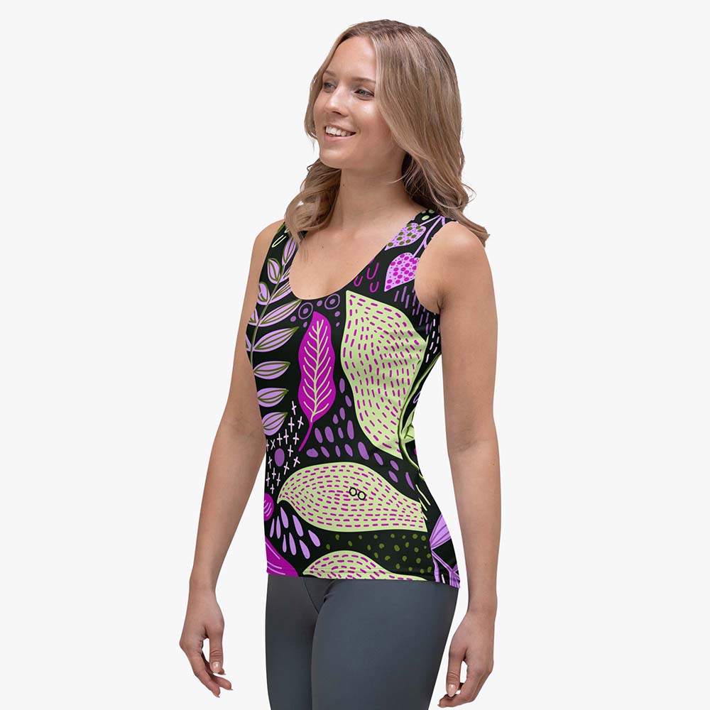 Pair your "Fairy Forest" leggings with this buttery soft and stretchy tank top. Made with a high-quality microfibre yarn, moisture wicking and super comfortable.
