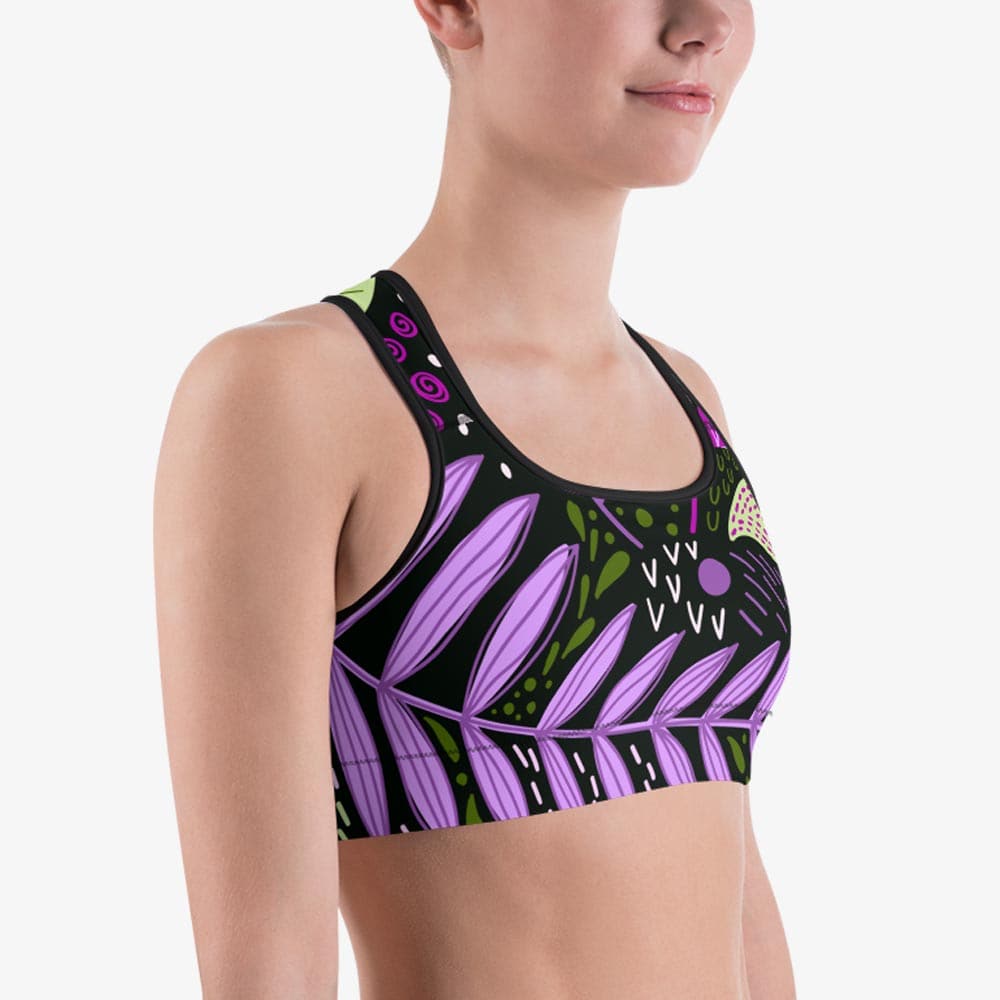 Floral Sports Bra "Fairy Forest" Purple/Lime