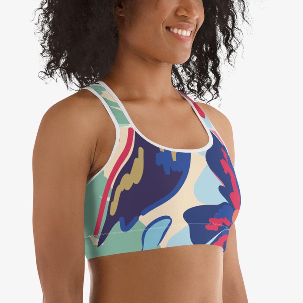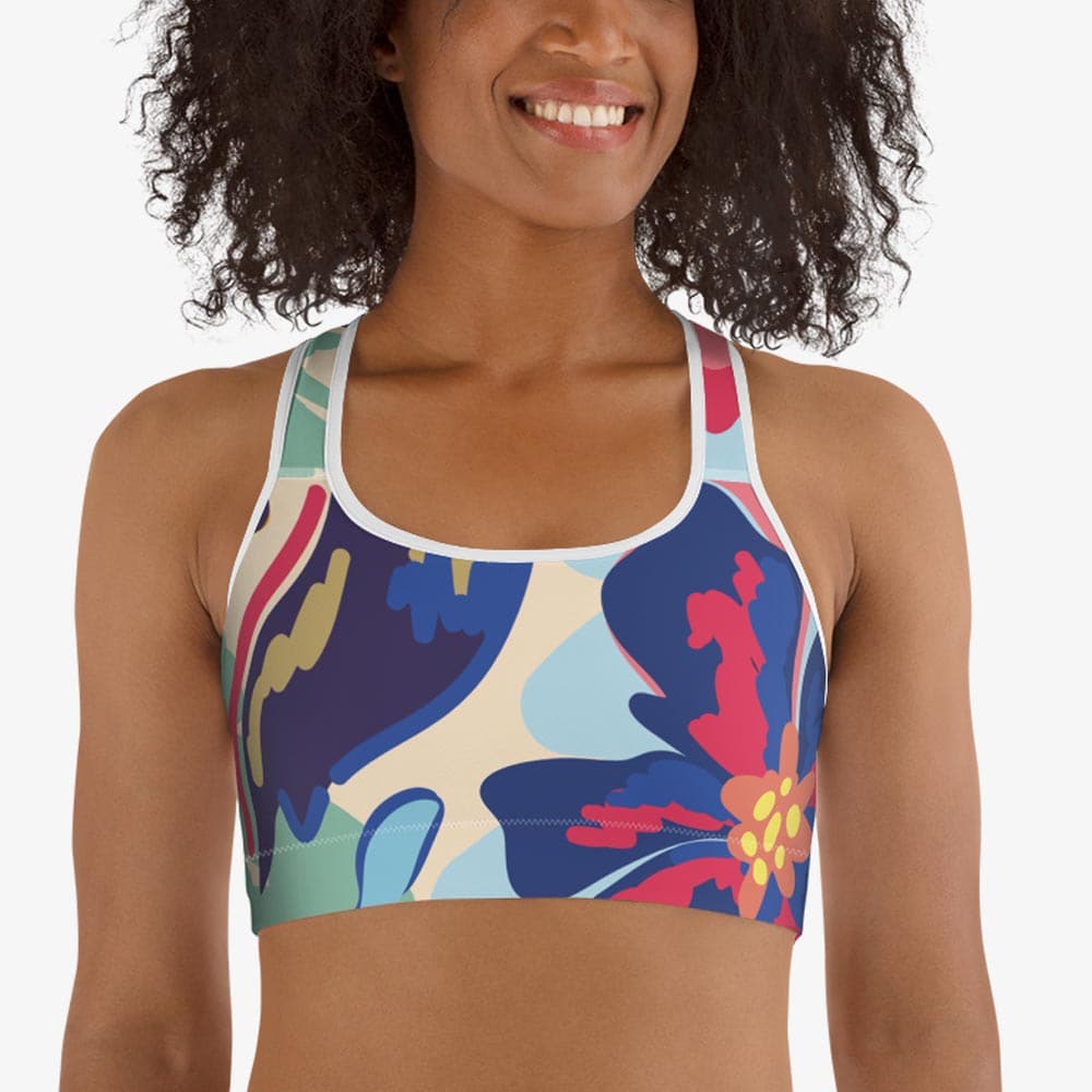 Floral Sports Bra "Flower Splash" Red/Yellow/Blue