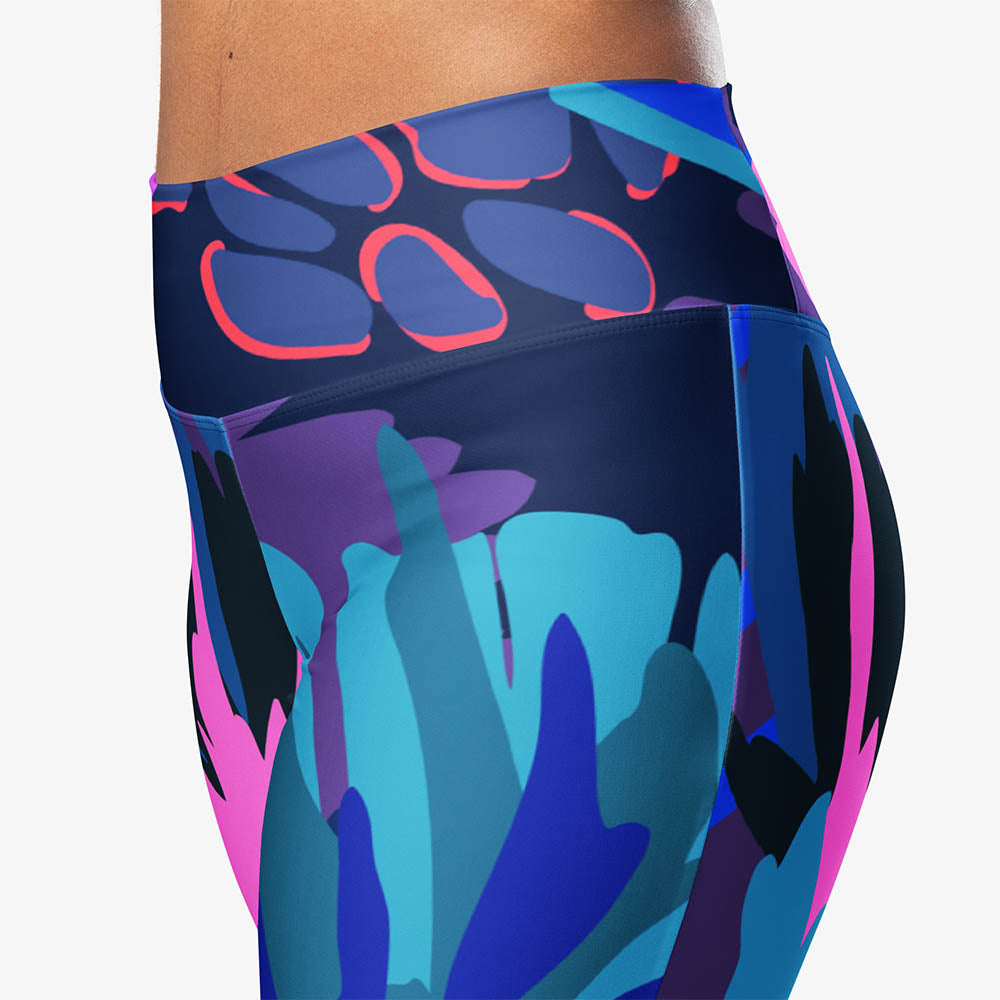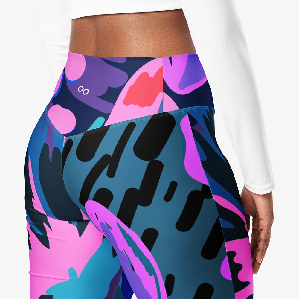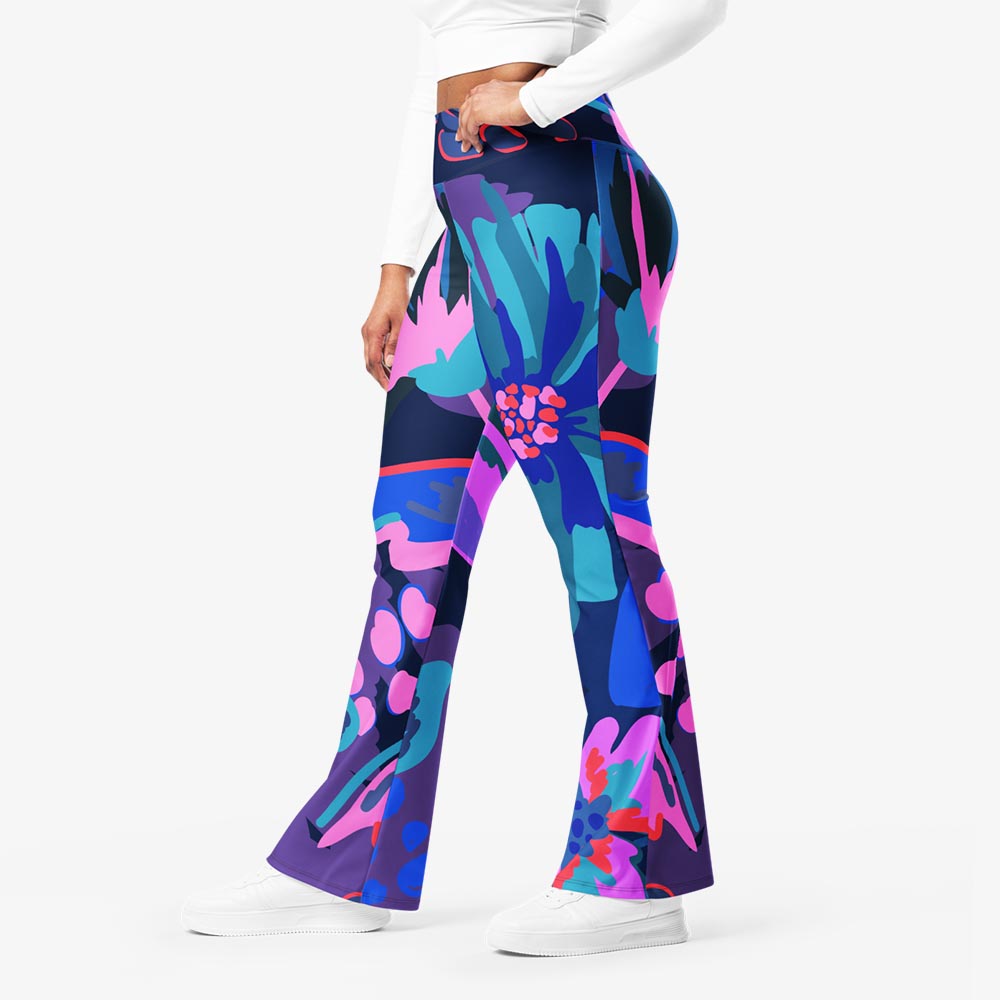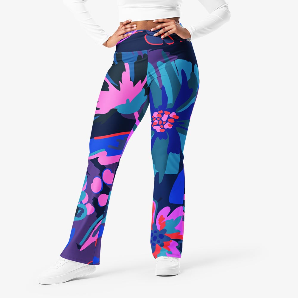 Recycled Flare leggings "Flower Splash" Blue/Fuchsia