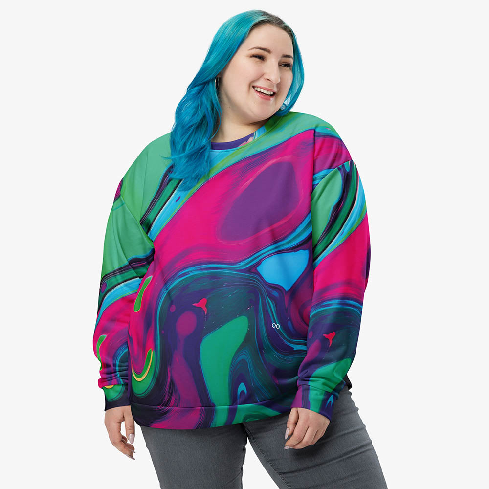 Recycled Fleece Sweatshirt "Funky Lava" Green/Magenta