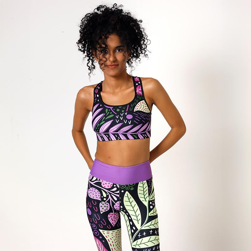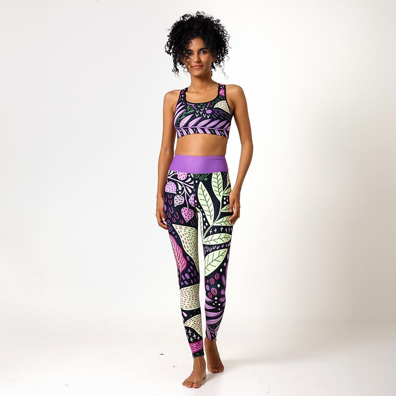 Zoom Floral Leggings "Fairy Forest" Purple/Lime