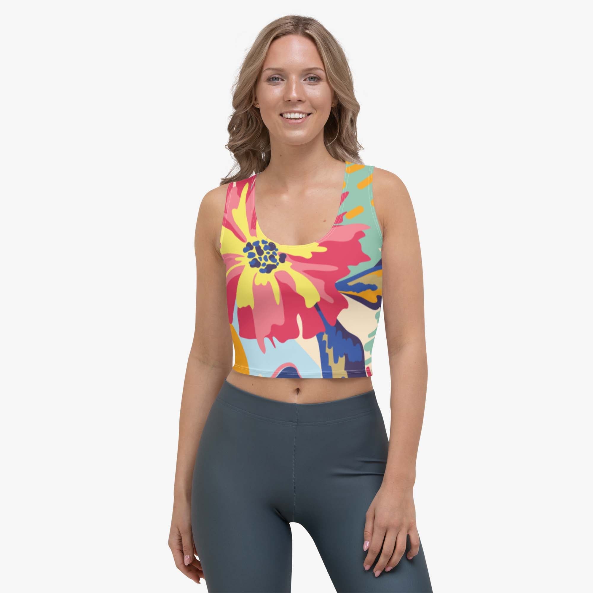 Floral Crop Top "Flower Splash" Red/Yellow/Blue