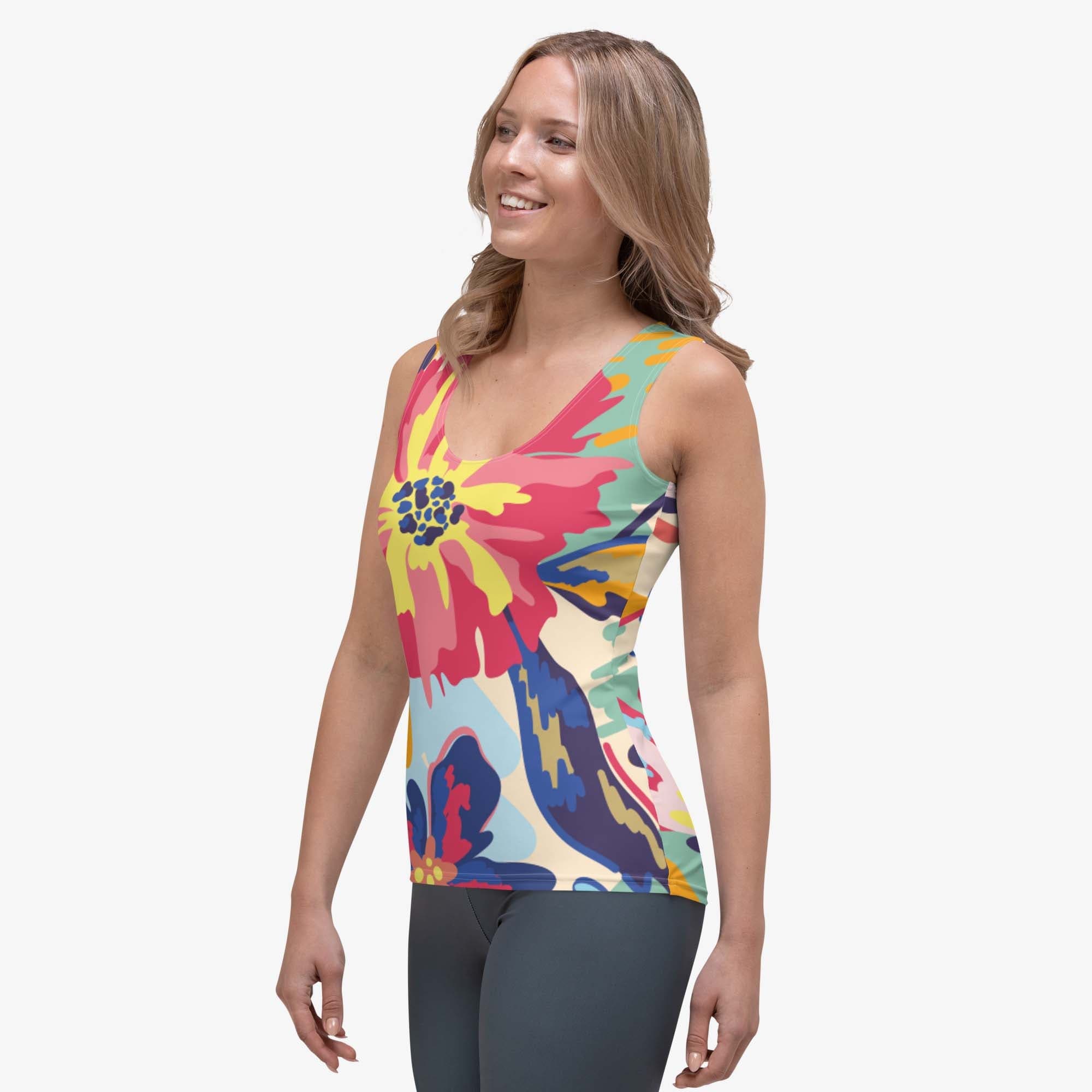 Pair your Flower Splash leggings with this buttery soft and stretchy tank top. Made with a high-quality microfibre yarn, moisture wicking and super comfortable.