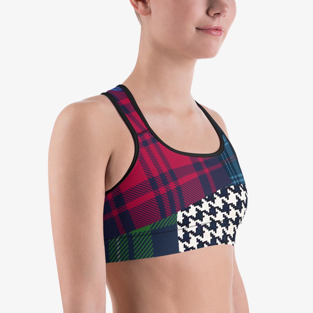 Printed Sports Bra "Tartan Galore" Red/Green/Blue