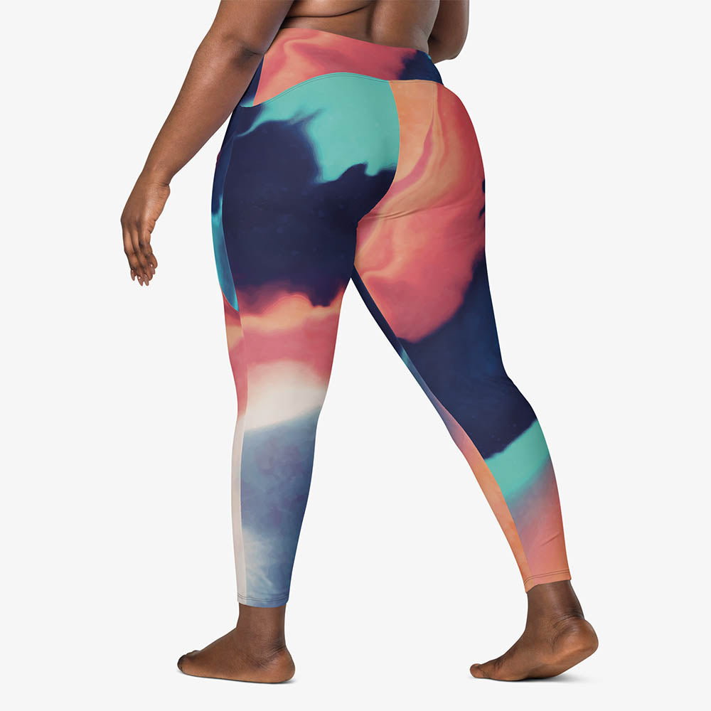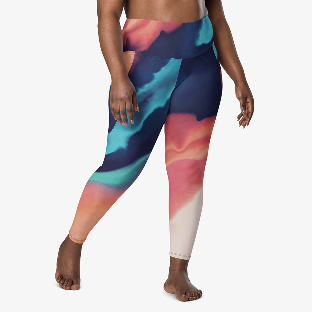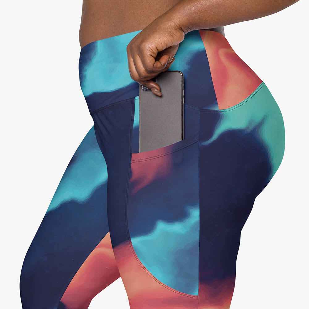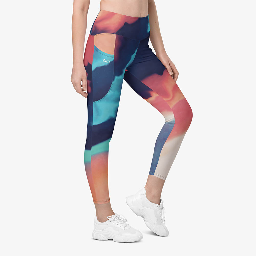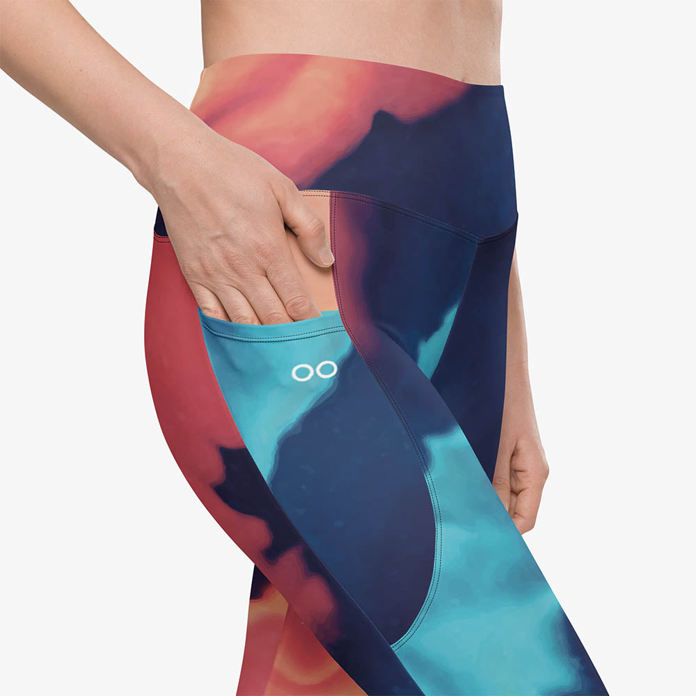 Recycled Printed Leggings "Funky Clouds" with Pockets Blue/Terracotta