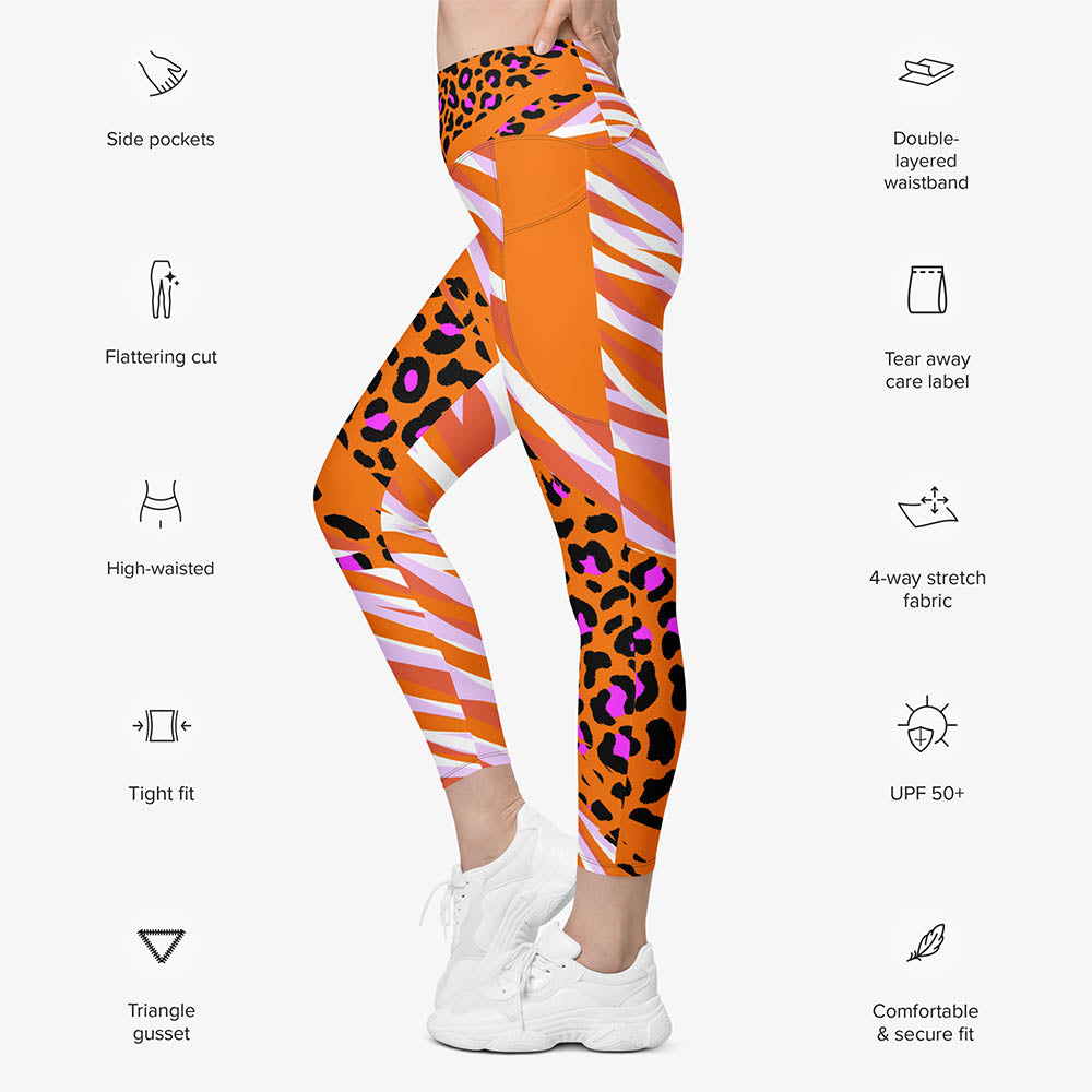 Recycled Animal Printed Leggings "Cheetiger" Orange with Pockets