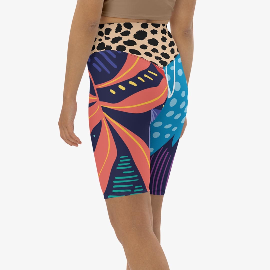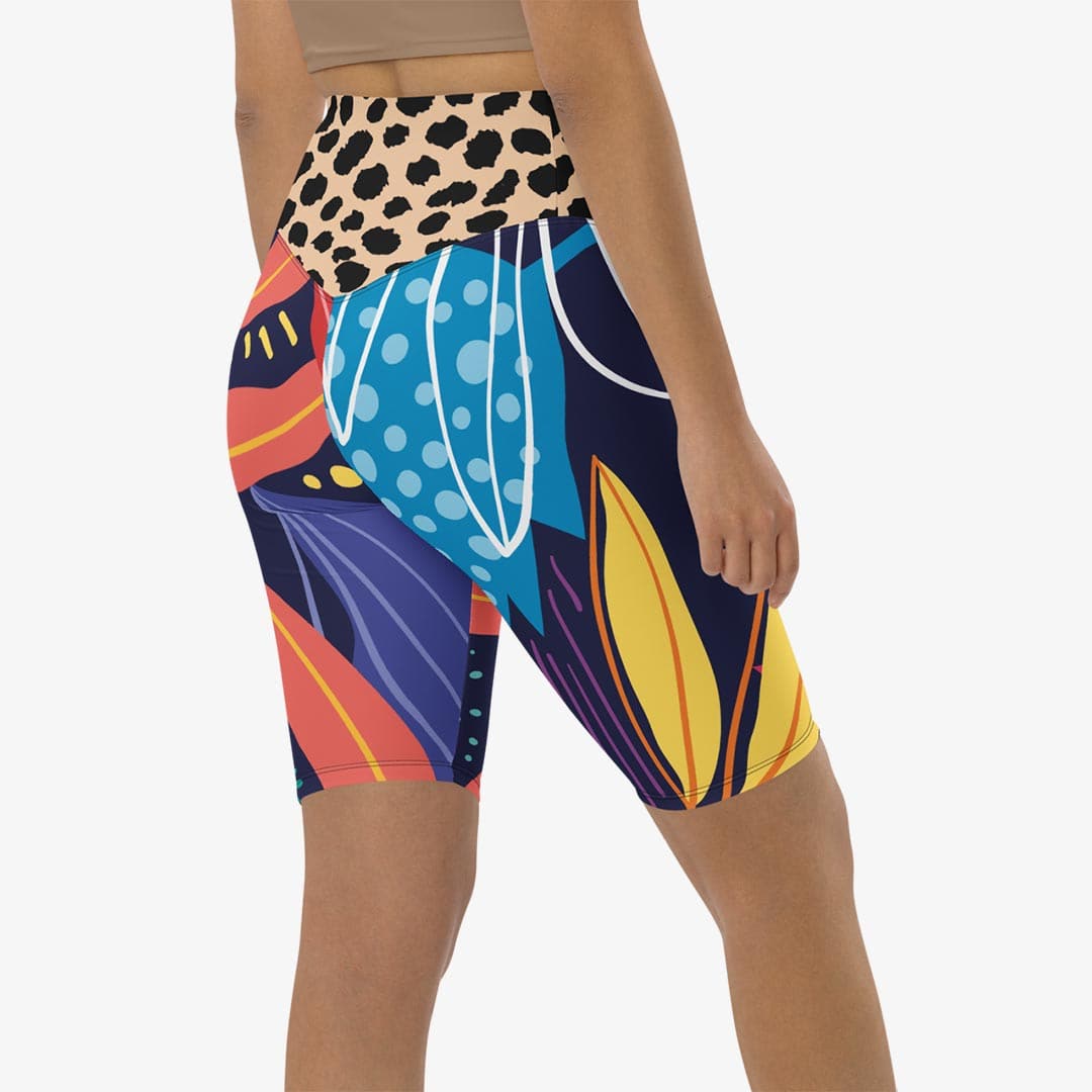 Biker Shorts "Animal Leaves" Blue/Orange/Green