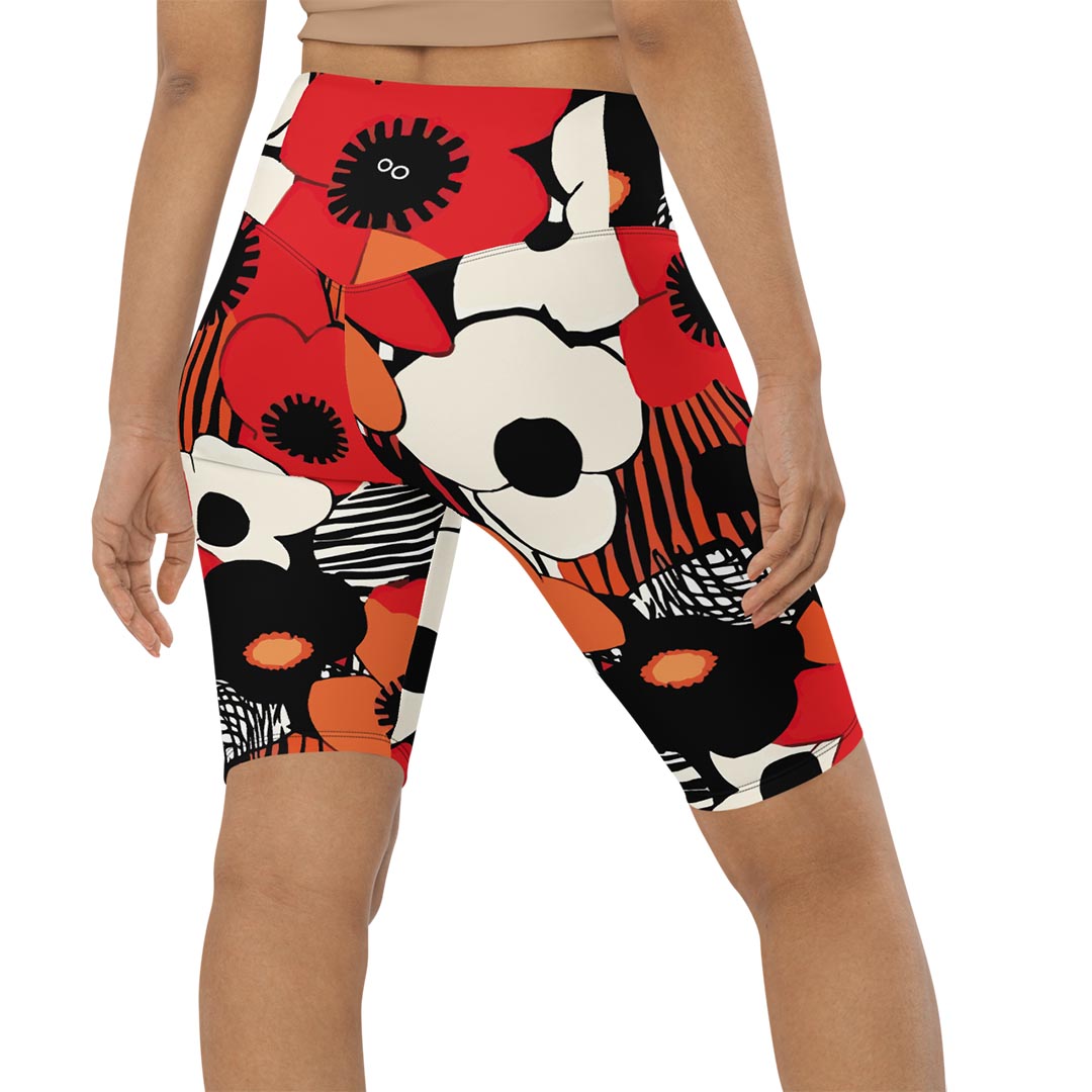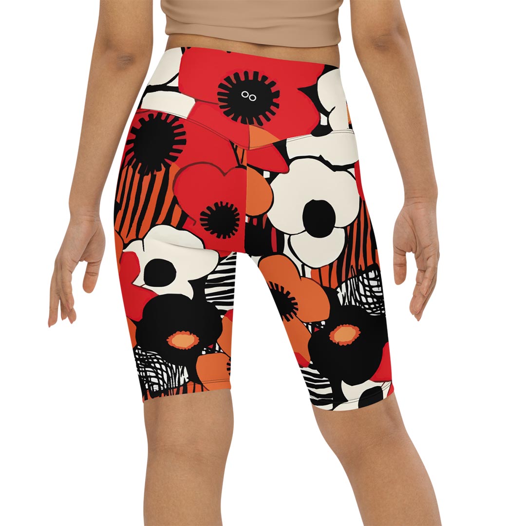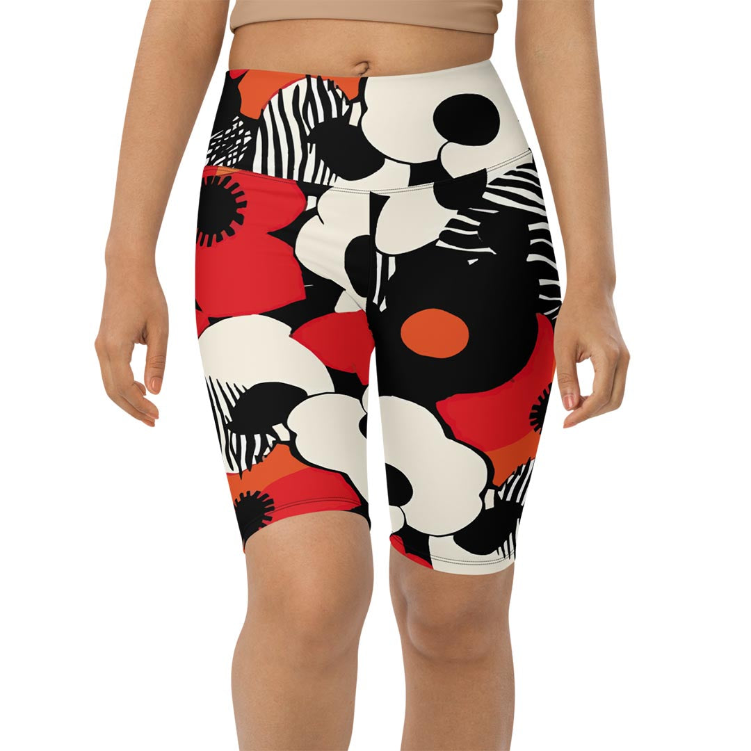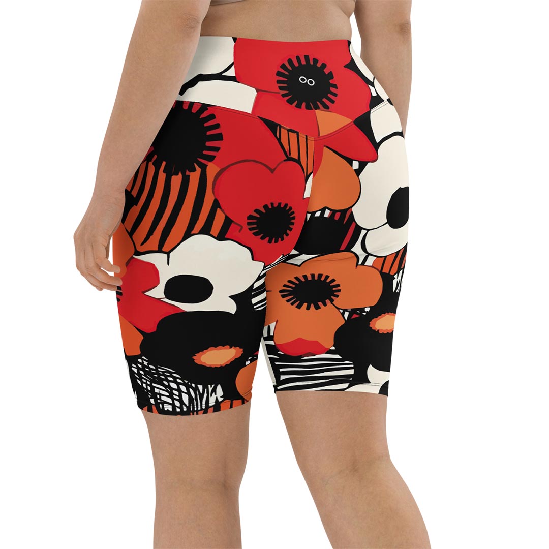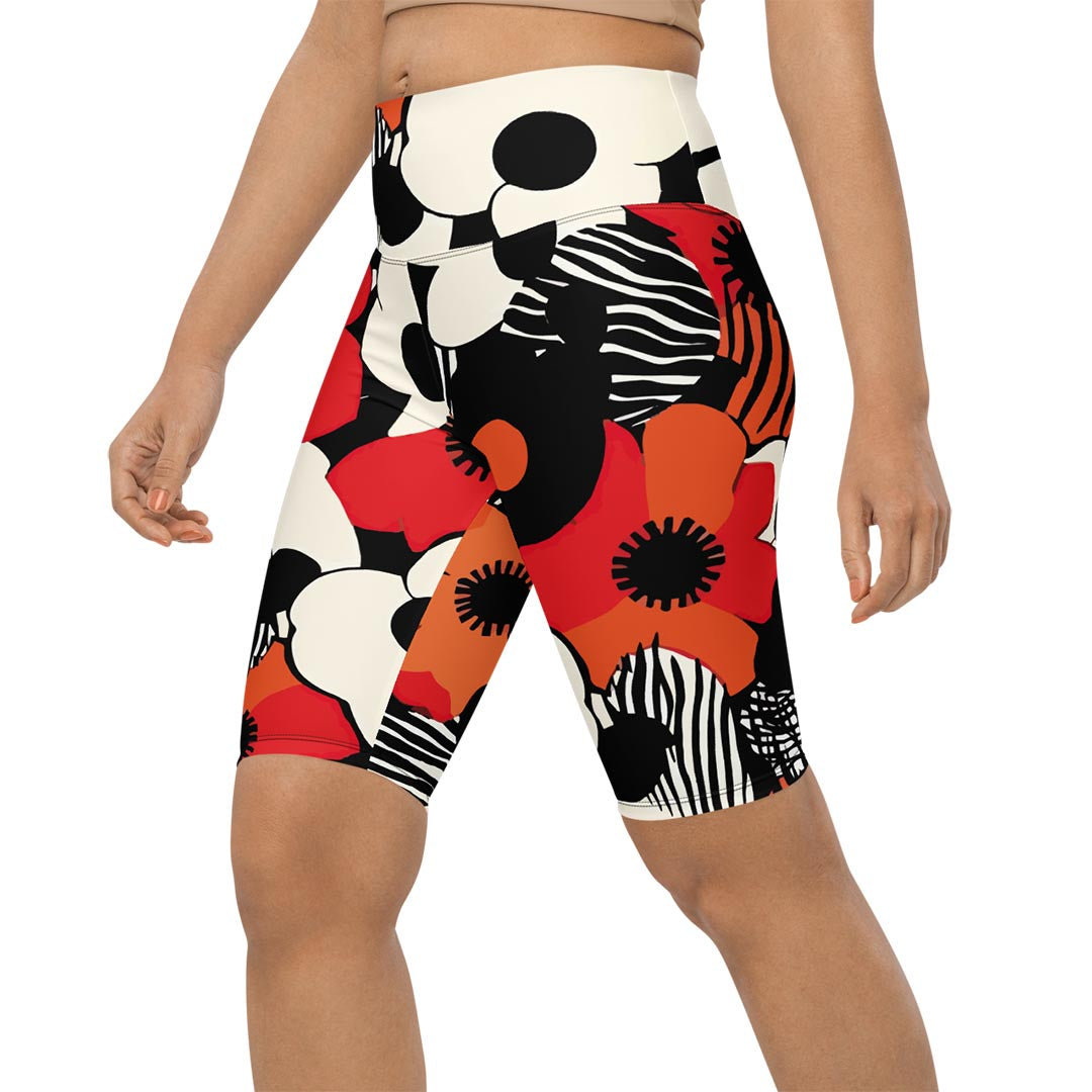 Biker Shorts "Zebra Blossom" Black/Red/Orange
