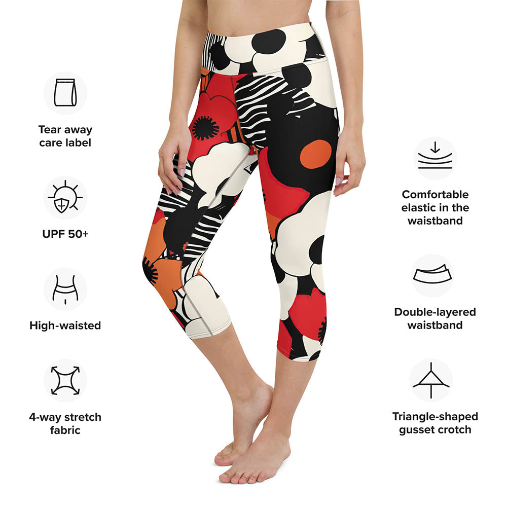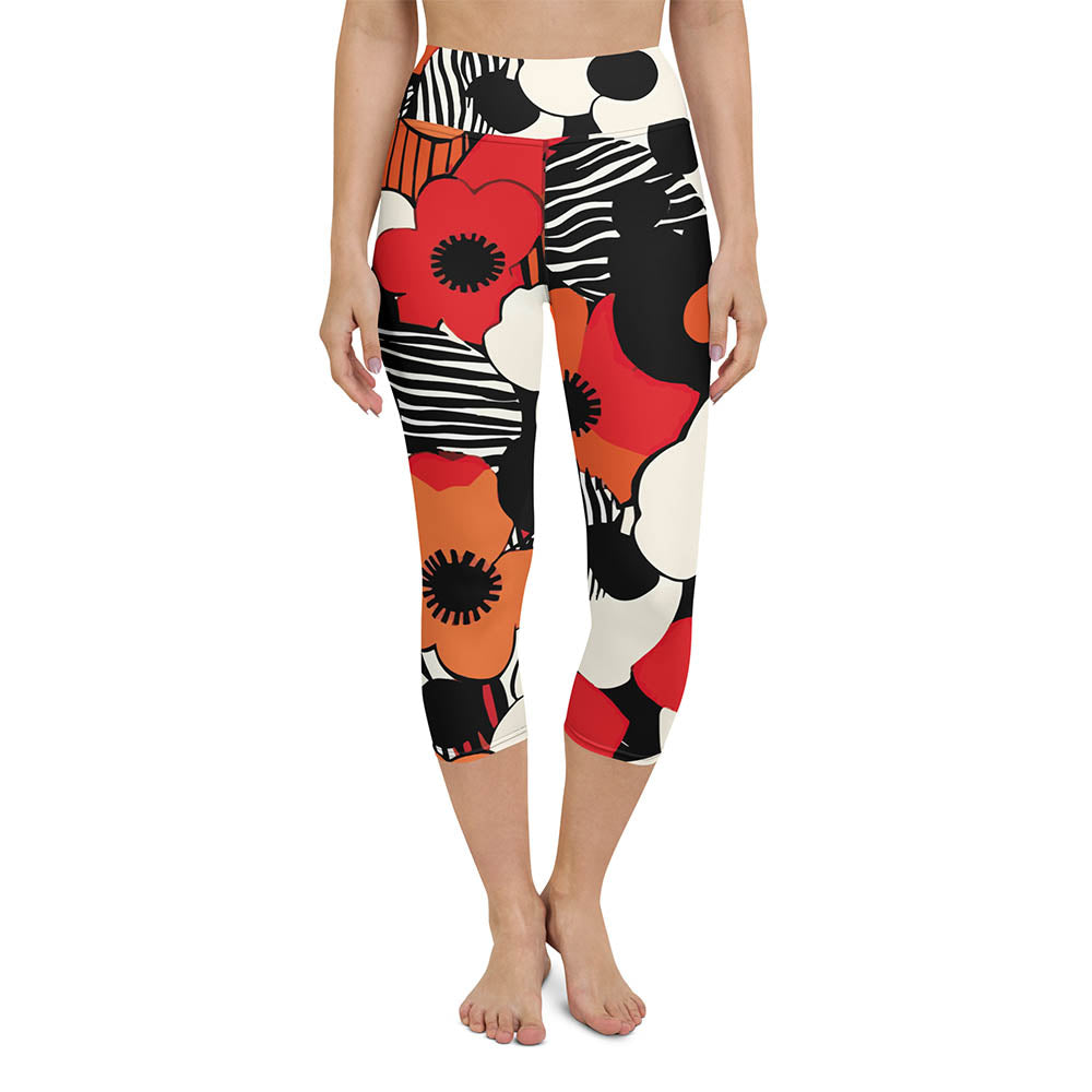 Zoom Floral Capris "Zebra Blossom" Black/Red/Orange