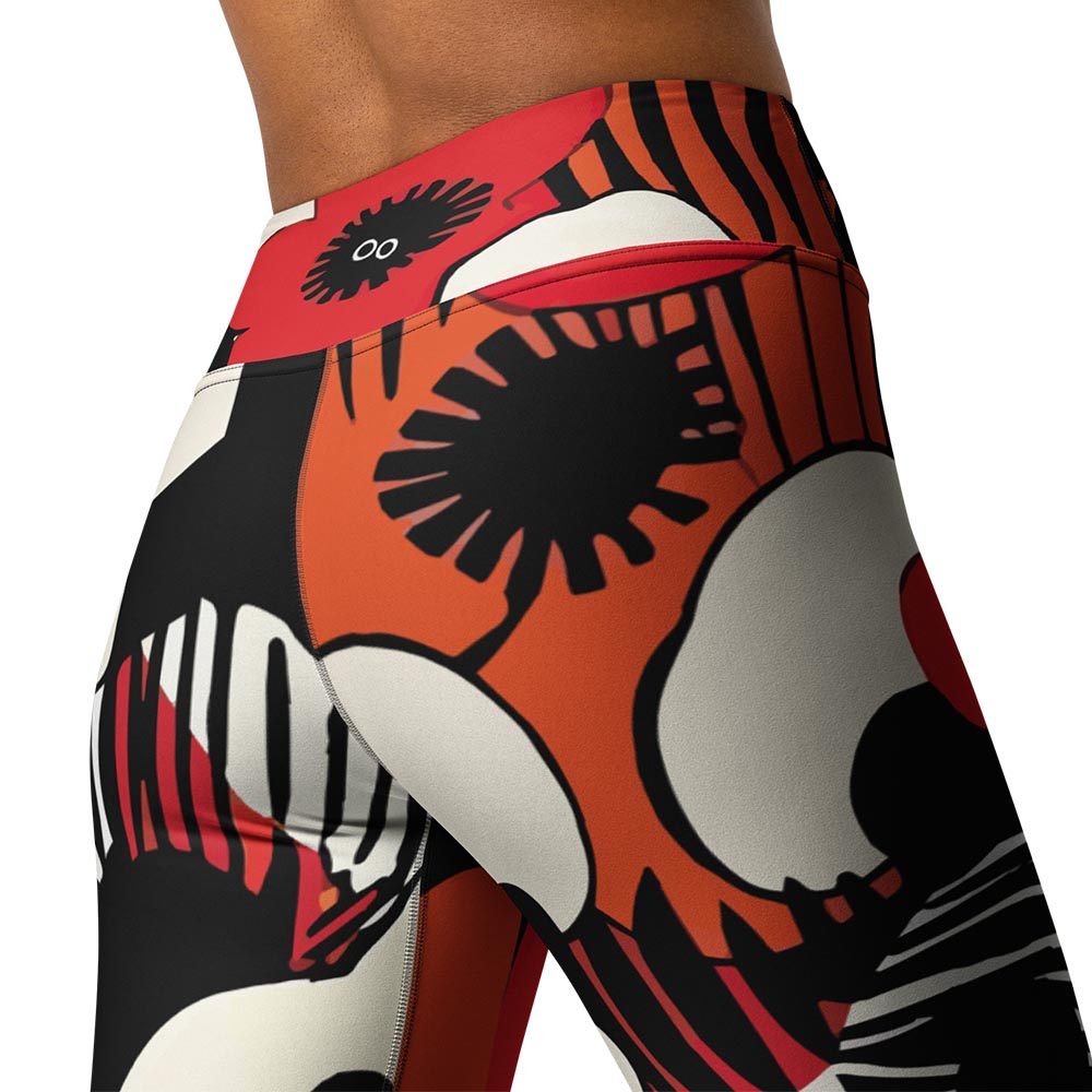 Floral Capris "Zebra Blossom" Black/Red/Orange