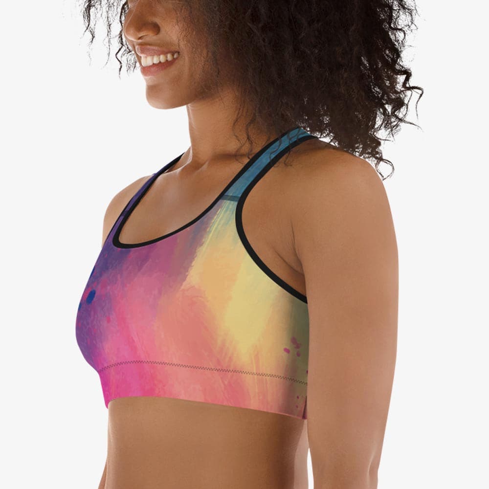 Printed Sports Bra "Cosmic Splash" Orange/Purple/Pink