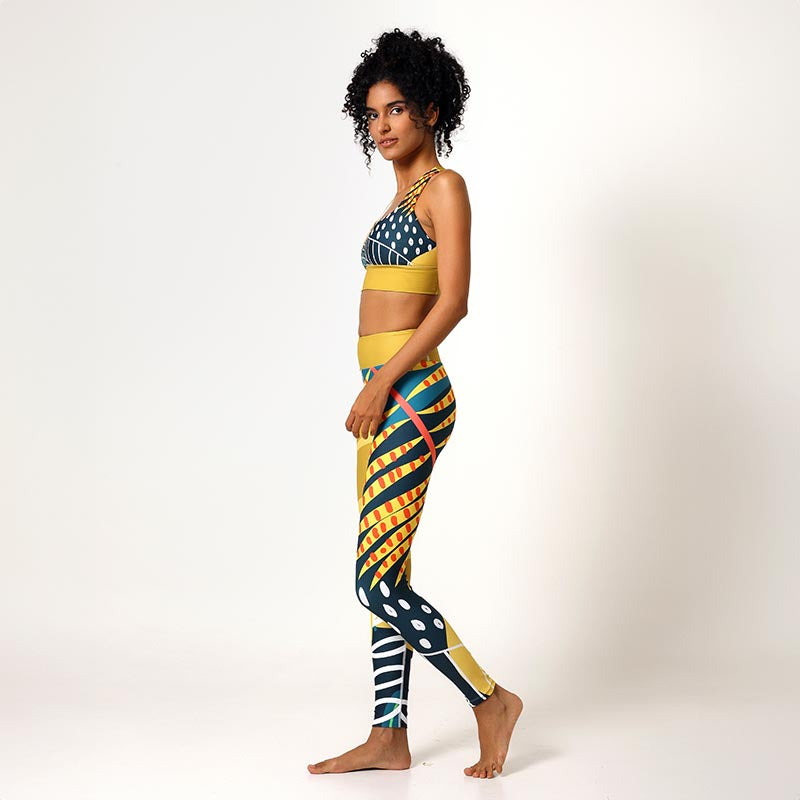 Let nature embrace you with these funky, patterned leggings. Their soft fabric stretches and gently follows all your movements, wrapping your body like a giant leaf. Their microfibre yarn is smooth and cosy and the raised waistband guarantees a perfect fit during any exercise. With flat seams, covered stitch and triangle-shaped gusset crotch to allow for maximum movement.